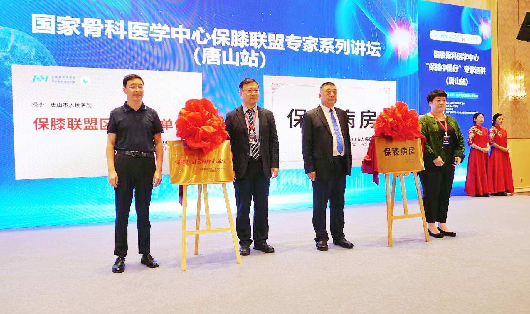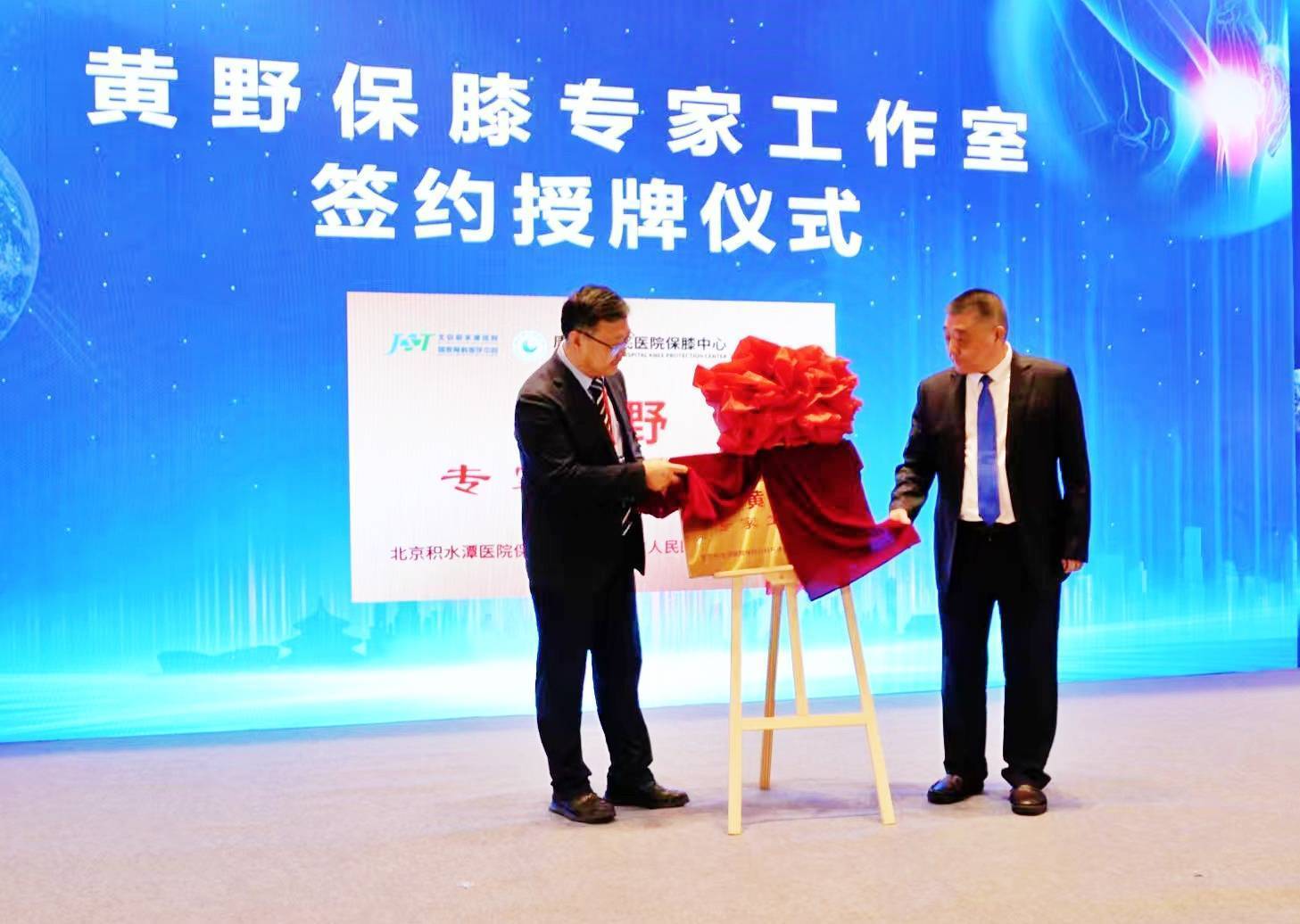 唐山市人民医院国家骨科医学中心保膝联盟首批成员单位揭牌仪式会上,黄野教授代表国家骨科医学中心保膝联盟与唐山市卫健委领导董自武及徐刚院长共同为唐山市人民医院国家骨科医学中心保膝联盟成员单位揭牌。