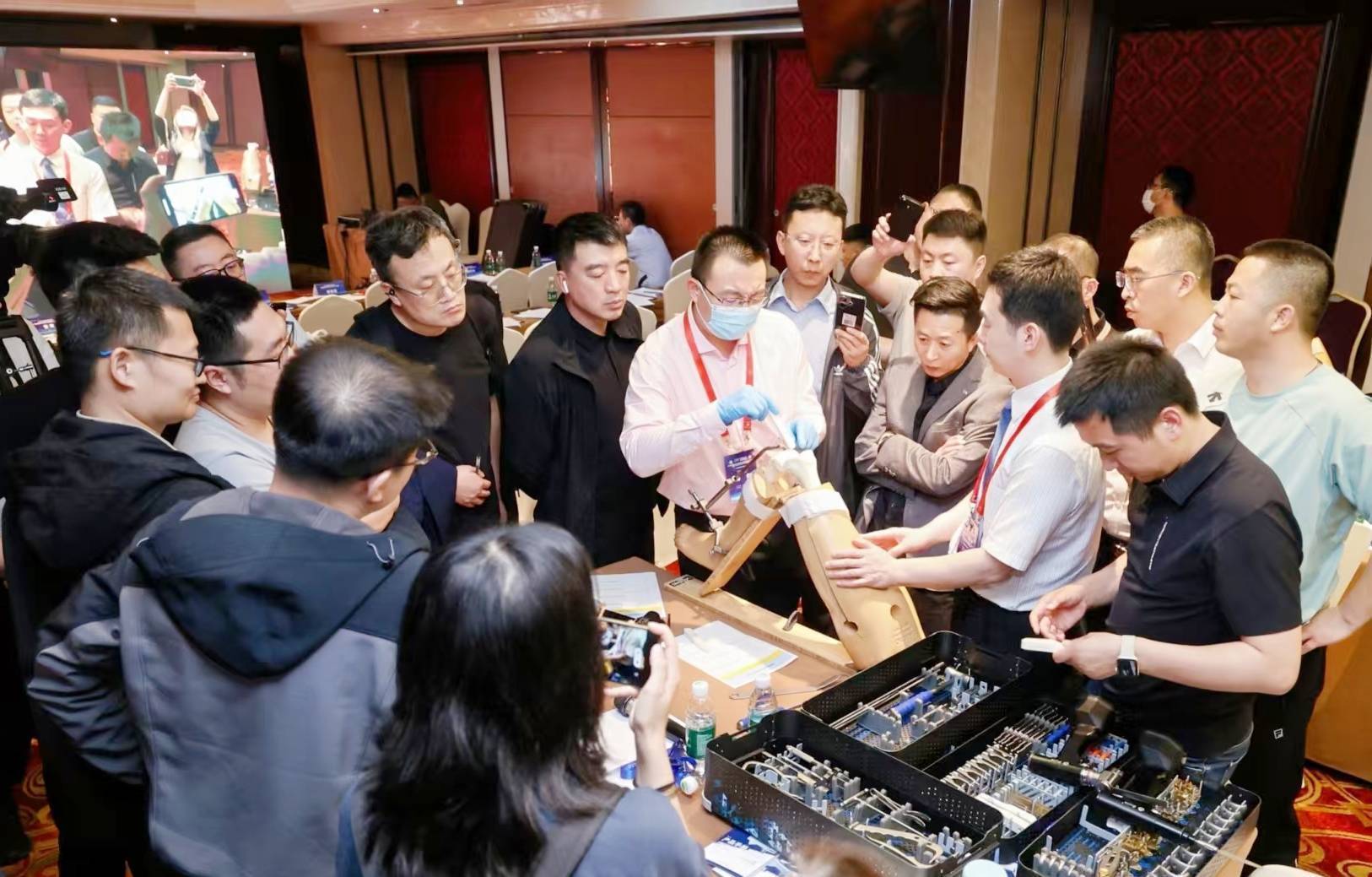 本次会议中特别设置了WORKSHOP实操培训环节,广东省中医院运动医学科杨伟毅主任、北京积水潭医院保膝中心柳剑主任以单髁假骨模型进行实操演示,展示了固定单髁的智能手术规划、精确截骨功能,充分表明了固定单髁的先进性和重要临床价值。